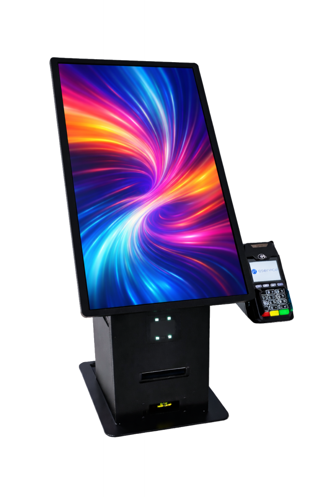 Stabilna, kotwiona do podłoża obudowa z aluminium, metalu i tworzyw sztucznych została zaprojektowana z myślą o intensywnej eksploatacji w przestrzeniach publicznych. Dostęp serwisowy od tyłu urządzenia ułatwia konserwację i rozbudowę, a estetyczna forma sprawia, że kiosk dobrze komponuje się zarówno w galeriach handlowych, jak i w lokalach gastronomicznych czy punktach usługowych. Kiosk dostępny jest również w wersji High Tower, w obudowie montowanej do podłogi.